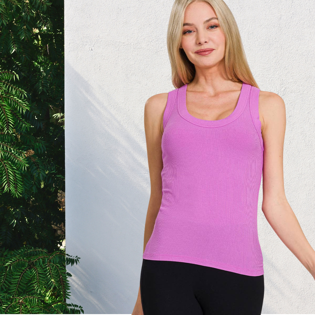 Ribbed Scoop Neck Tank Top in Bright Mauve