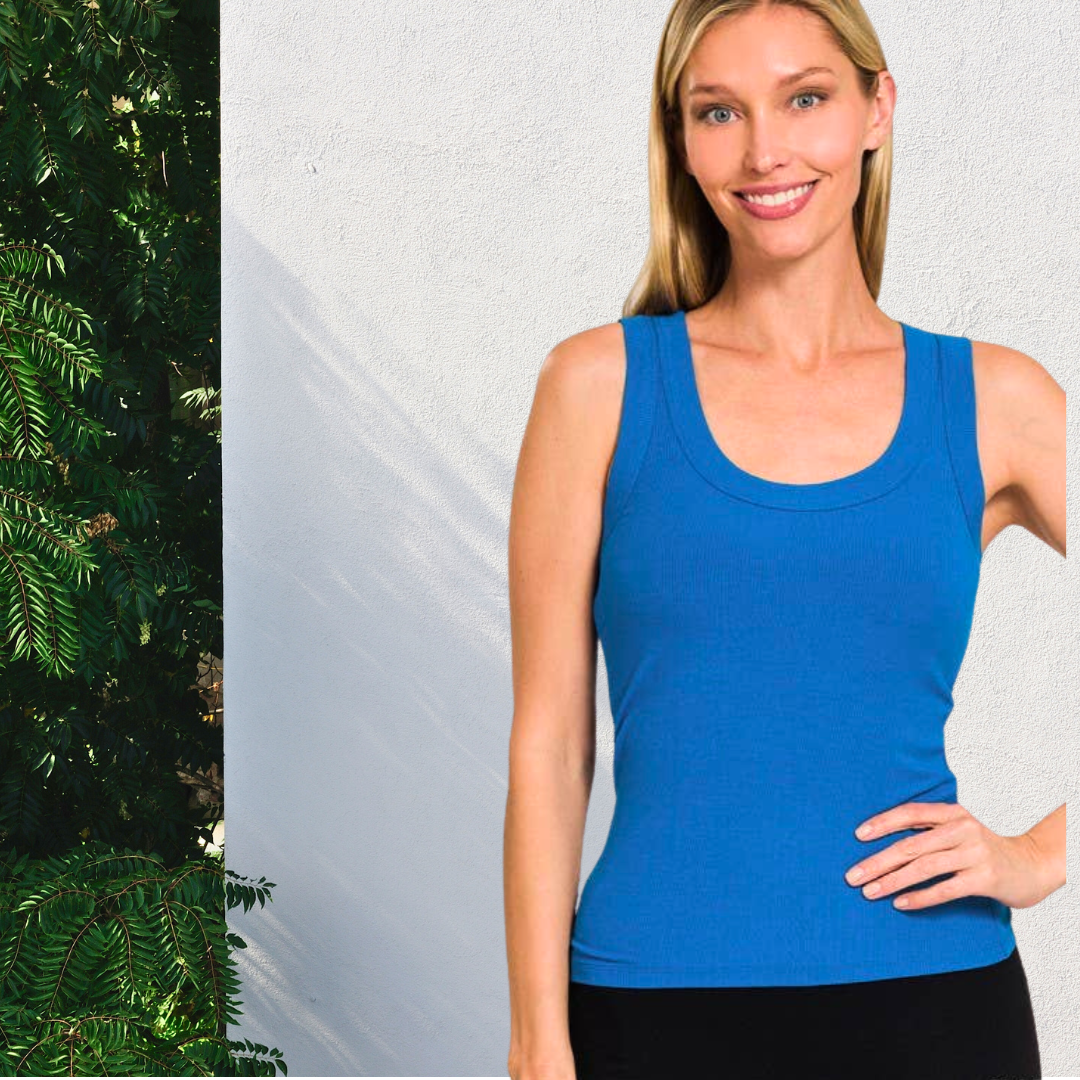 Ribbed Scoop Neck Tank Top in Classic Blue